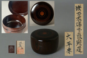 【 福田慶造 鉄刀木 煤竹 象嵌造 大平棗 共箱・共布・栞付き】