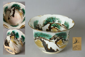 【 白井半七 乾山写 雪松図 透入 鉢 共箱付き】