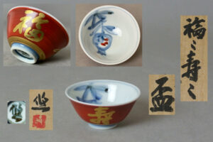 【 近藤悠三 赤絵 金彩 ”福々寿々” 盃