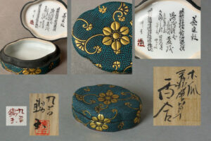 【 中田錦玉 青粒 木瓜 唐草 内細字 香合 共箱・栞付き】