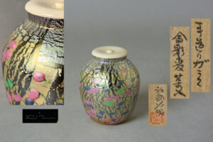 【 江副行昭 手造りガラス 金彩 茶入 共箱・仕覆付き】